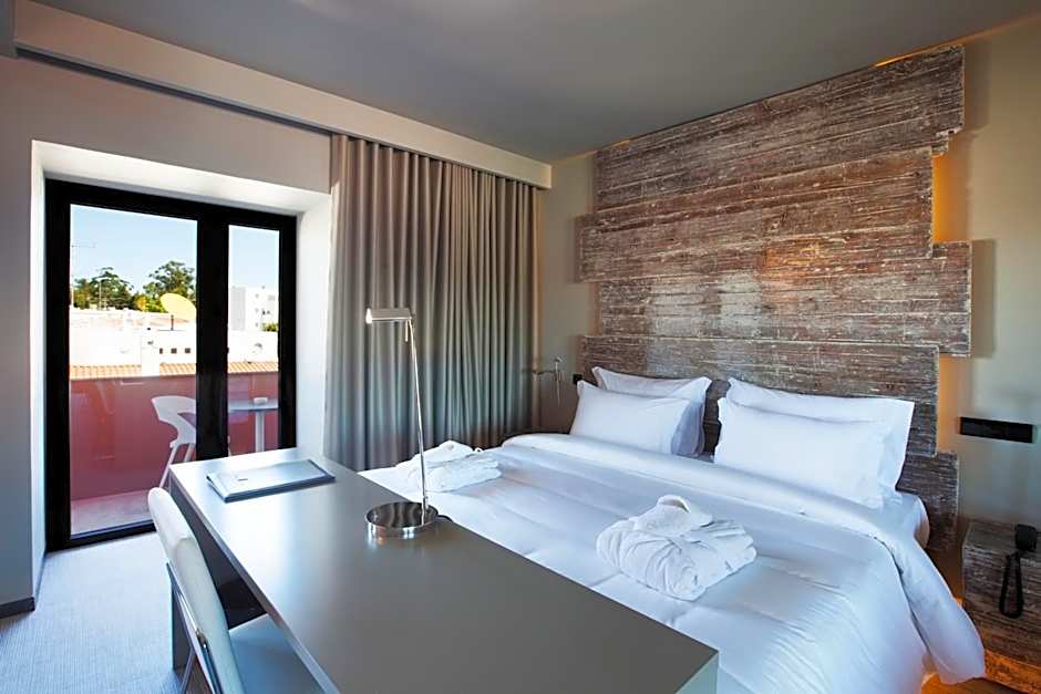 Set in a building that mixes a bold and unique design with traditional elements in historic city of Évora, this junior suite includes a double bed facing a ample window. It features a living area and a balcony.